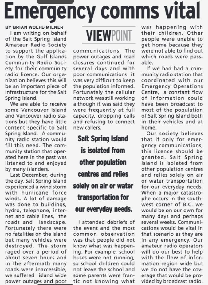 [Health – Radio Towers – Salt Spring Island, BC] Viewpoint – Emergency comms vital by Brian Wolfe-Milner – GI Driftwood (p.6) – December 24, 2019 2019-12-24 677 × 926 [Health – Radio Towers – Salt Spring Island, BC] Viewpoint – Emergency comms vital by Brian Wolfe-Milner – GI Driftwood (p.6) – December 24, 2019